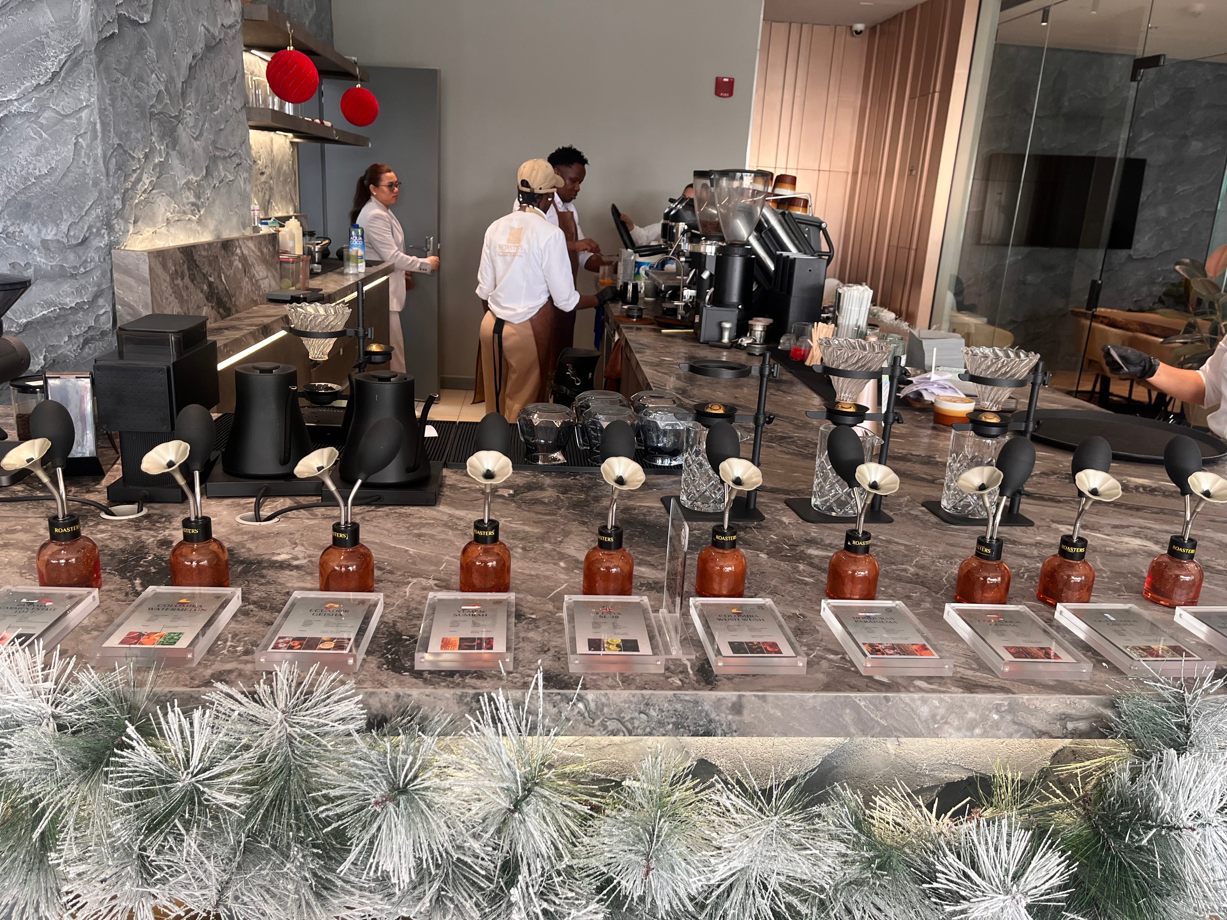 Coffee on the trip followed a barbell distribution. Most of it, drunk at the hotel (room, the “lounge” which our room had entitled us access to, breakfast) and for zero marginal cost, was extremely bad. Highly overroasted espresso from Nespresso or Lavazza machines.